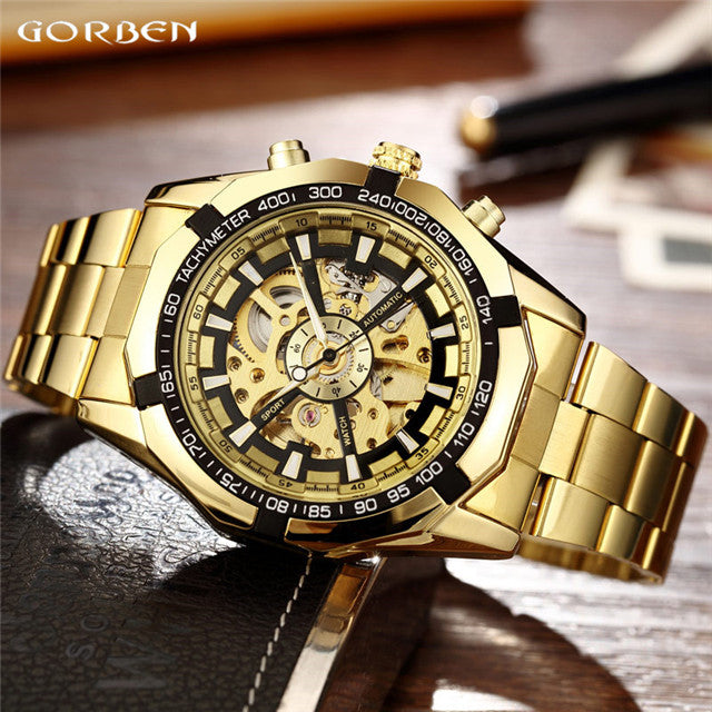 Luxury Silver Automatic Mechanical Watches for Men Skeleton Stainless Steel Self-wind Wrist Watch Men Clock relogio masculino
