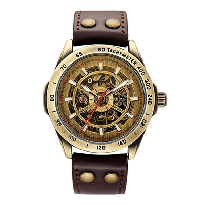 SHENHUA Skeleton Watch Automatic Reloj Hombre Men's Mechanical Wristwatch Antique Bronze Male Clock Luminous Dial Military Watch