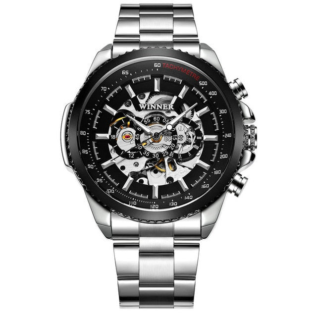 WINNER Official Automatic Watch Men Military Skeleton Mechanical Watches Genuine Leather Strap Luxury Dress Mens Wristwatches