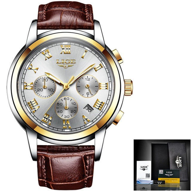 LIGE Watch For Men Top Brand Luxury Waterproof 24 Hour Date Quartz Clock Brown Leather Sports WristWatch Relogio Masculino 2019
