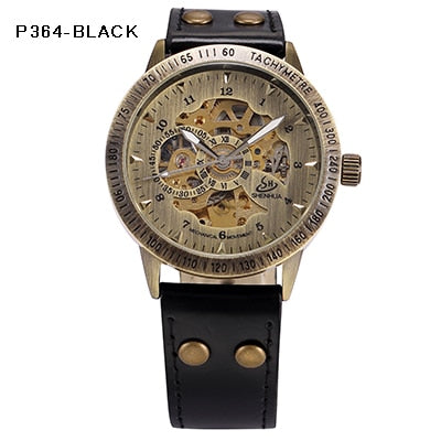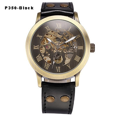 • Load image into Gallery viewer, Automatic Watch Men Skeleton Mechanical Watch Steampunk Vintage Bronze Leather Transparent Watches montre homme Ship 24 hours