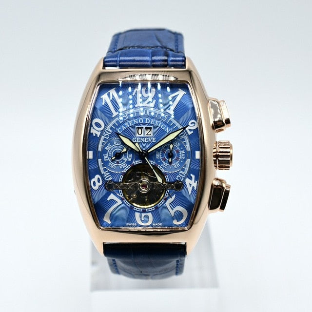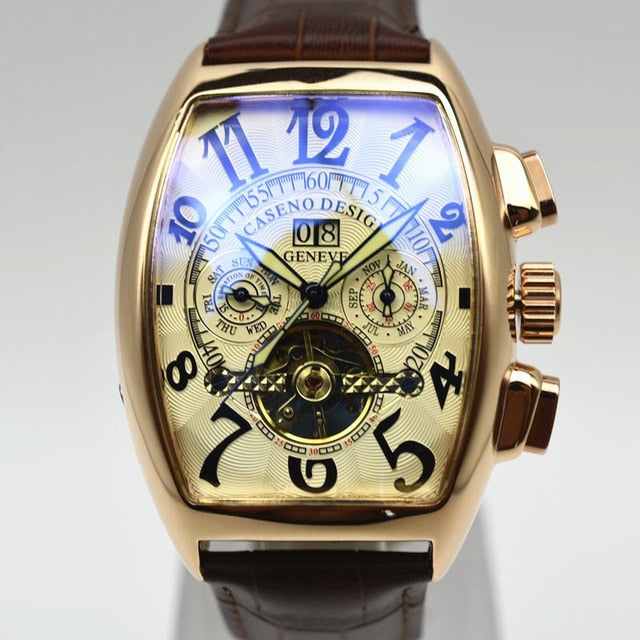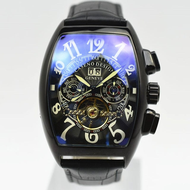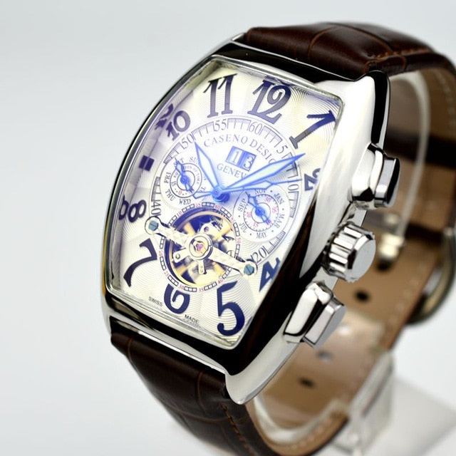 CASENO Automatic Mechanical Men Watch Fashion Skeleton Leather Wrist watch Mens Top Brand Luxury Tourbillon Watch Classic Men